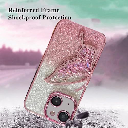 Name : i-Phone 13,i-Phone 14,Back Cover with Luxurious Glitter and Cute Butterflyy Plating Design, This Elegant Women's Teen Girls Back Cover for The Available Butterflyy (Pink)