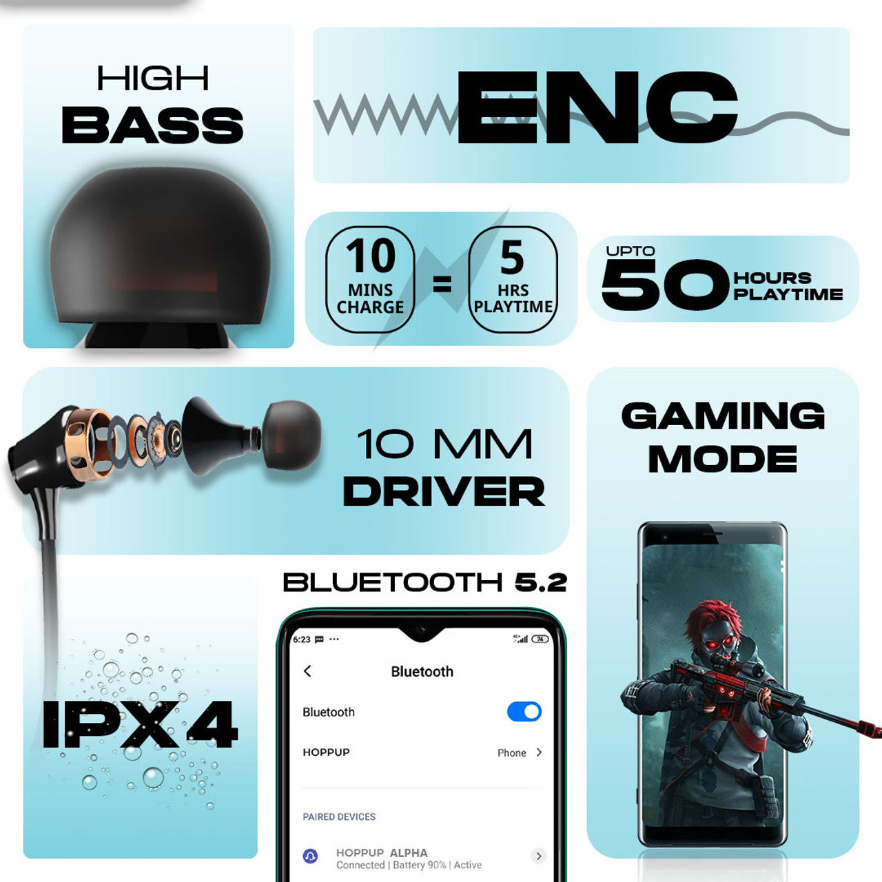 Name : HOPPUP ALPHA Neckband with 50H Playtime, Gaming Mode, ENC & Made In India Bluetooth